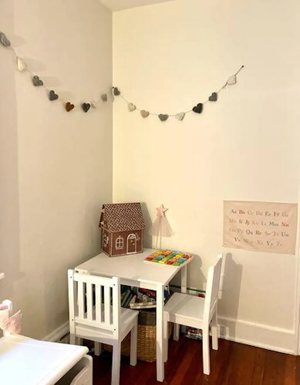 Separate the pieces and warm between your fingers. Press a piece into the top corners of the banner and press firmly into the wall. It's a simple as that!